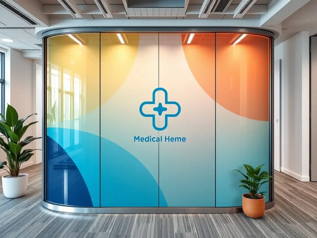 لوگو و پیام برند روی پارتیشن، حس حرفهای بودن و اعتماد بیماران را افزایش میدهد.